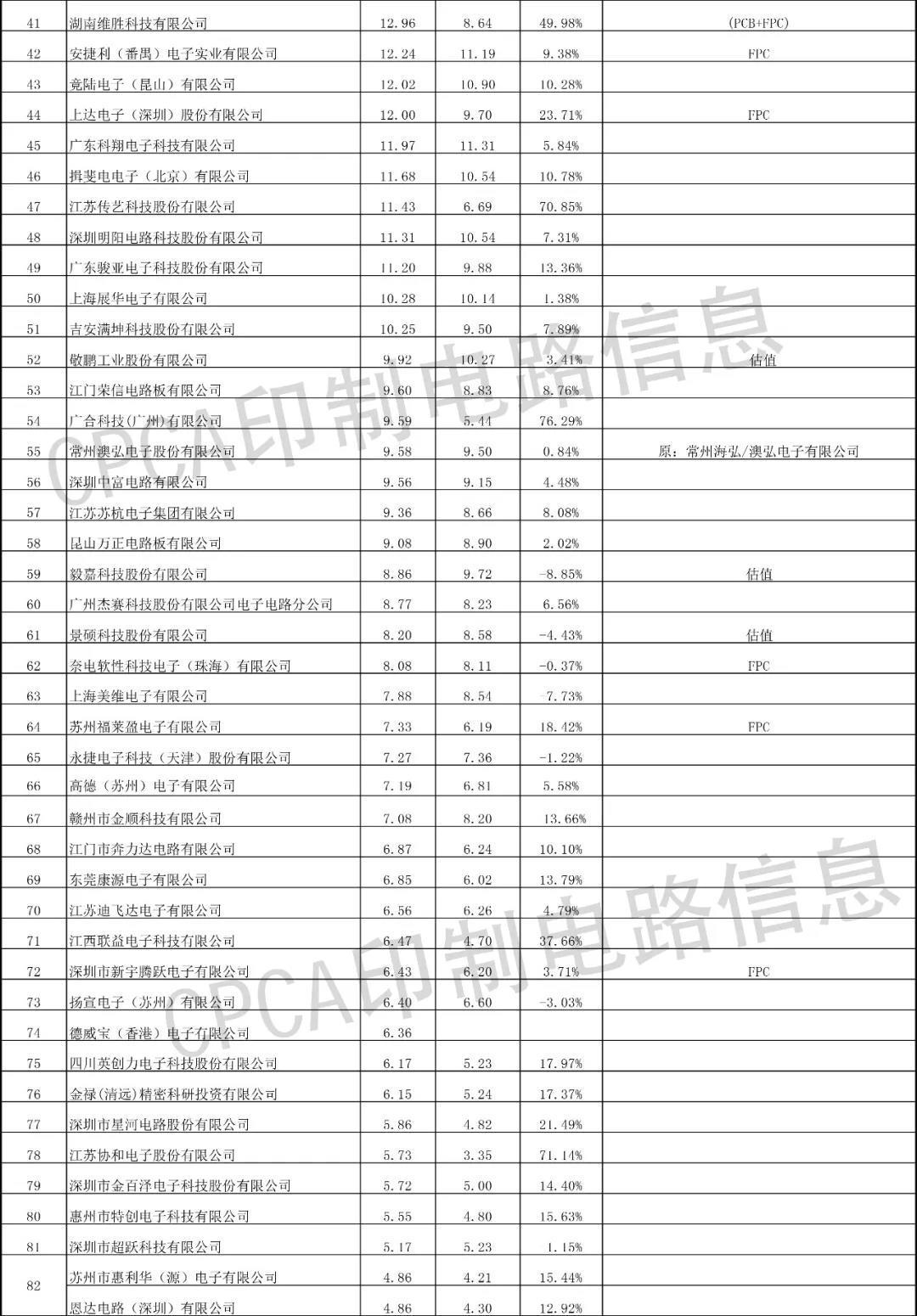 注:排行榜數據來源于CPCA印制電路信息